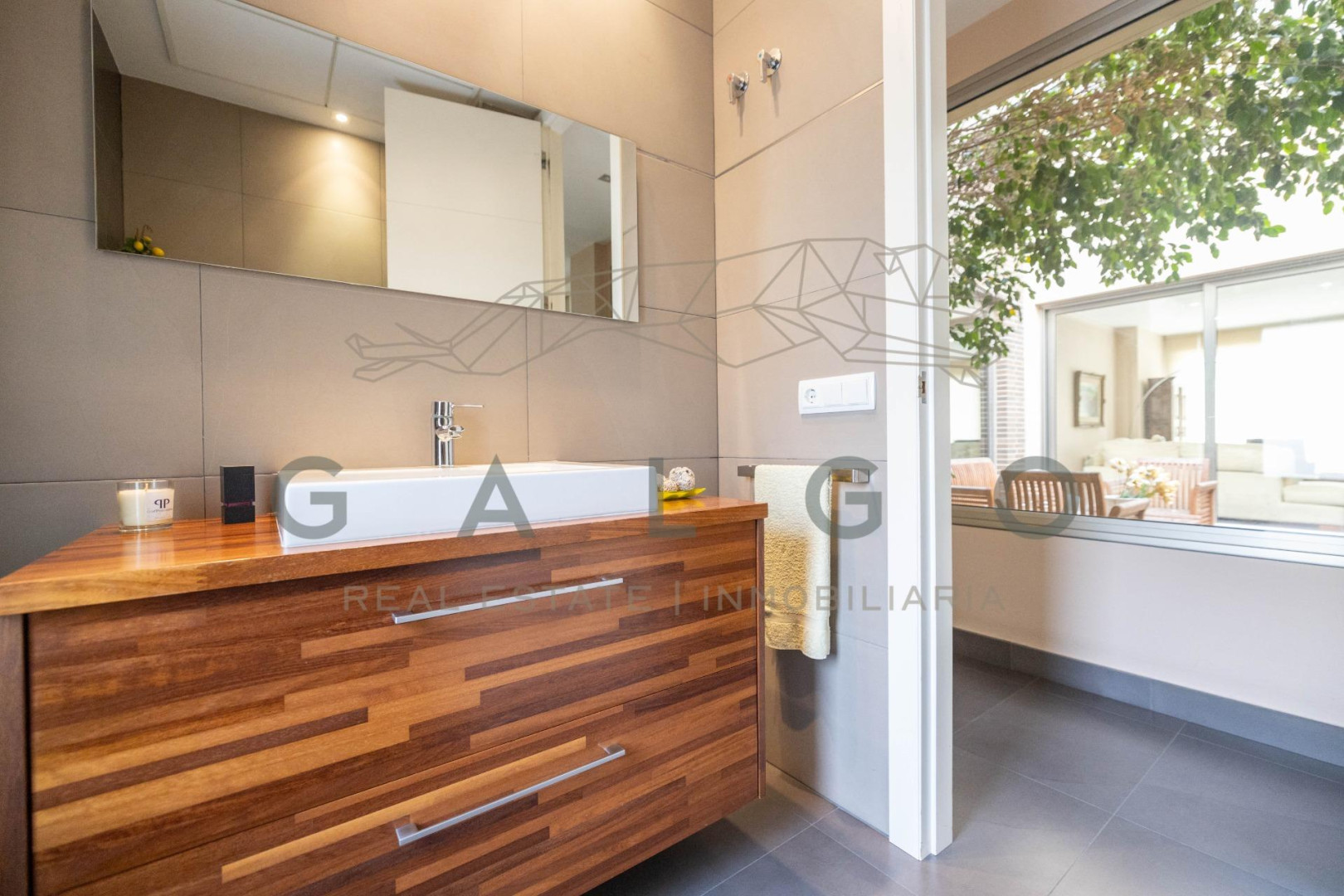 Het interieur van het huis is verdeeld rond een binnenplaats die licht en charme in het huis brengt. Rondom dit binnenterras zijn 6 kamers verdeeld waar we het volgende kunnen vinden: een woonkamer met panoramische ramen die uitkijkt op het zwembad met jacuzzi met toegang tot een overdekt terras dat ideaal is om te genieten van het Valenciaanse klimaat, een aparte eetkamer met ruimte voor 12 personen, een volledig uitgeruste keuken met kookeiland en toegang tot de barbecue aan de achterkant, een kantoor met zithoek en eettafel, een derde woonkamer die momenteel wordt gebruikt als ontspanningsruimte, een gastentoilet en een aparte slaapkamer met eigen badkamer en grote kledingkast. Op deze verdieping hebben we een bijkeuken en een voorraadkamer voor alles wat je nodig hebt en een tweede terras aan de achterkant waar je kunt schuilen voor de hete zomerdagen.