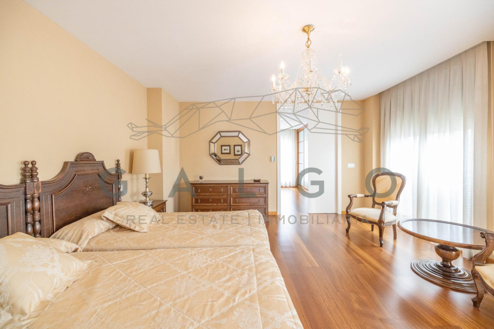Vanuit de hal hebben we toegang tot de eerste verdieping van het huis waar de hoofdslaapkamer een authentieke hotelsuite is met een volledig uitgeruste kleedkamer, een complete badkamer met douche en hydromassagebad en een privéterras. In de andere vleugel van de bovenverdieping vinden we een kantoor van 40 m2, twee tweepersoonsslaapkamers met toegang tot het terras en balkon en een gedeelde badkamer met douche.