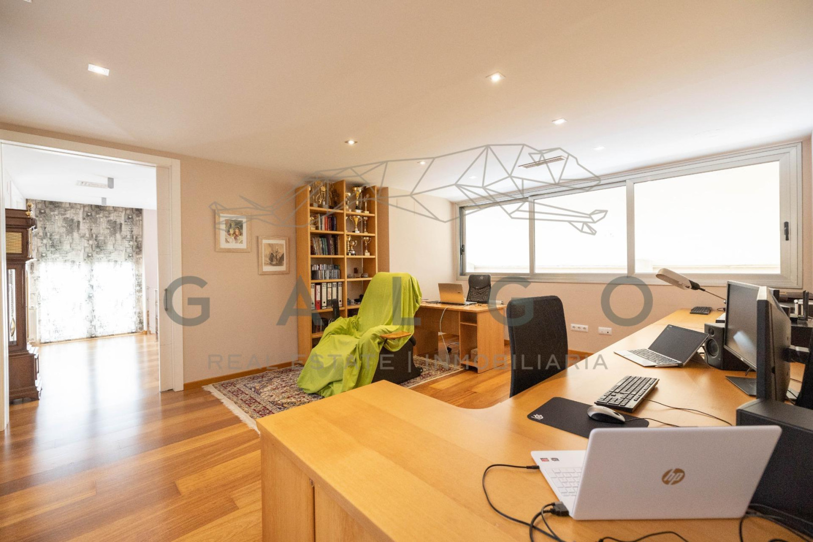 Desde el hall accedemos a la primera planta de la vivienda donde el dormitorio principal es una auténtica suite de hotel con vestidor totalmente equipado, un baño completo con ducha y bañera de hidromasaje y terraza privada. En el otro ala de la planta superior encontramos un despacho de 40 m2, dos dormitorios dobles con accesos a terraza y balcón y un baño compartido con ducha.