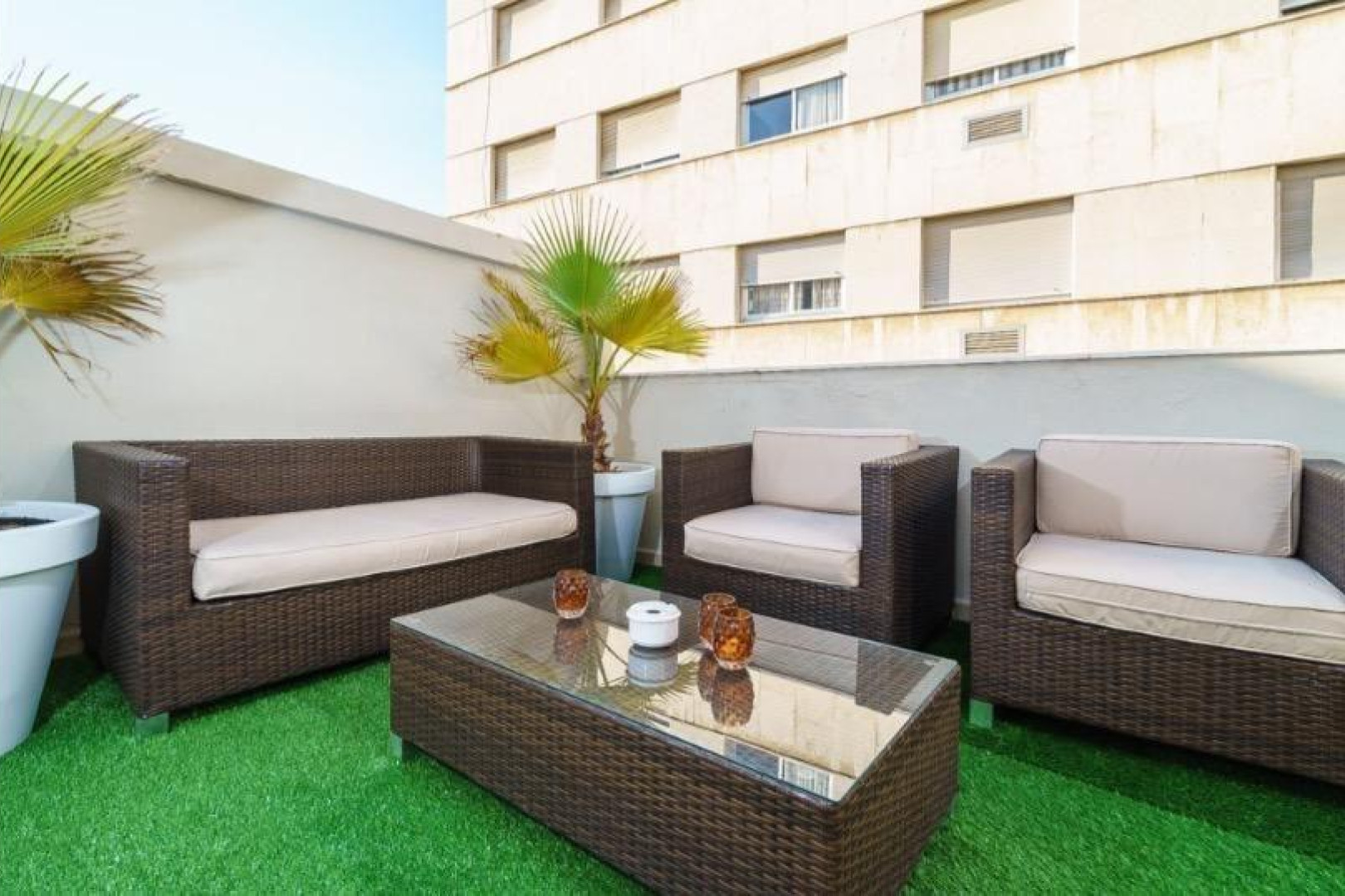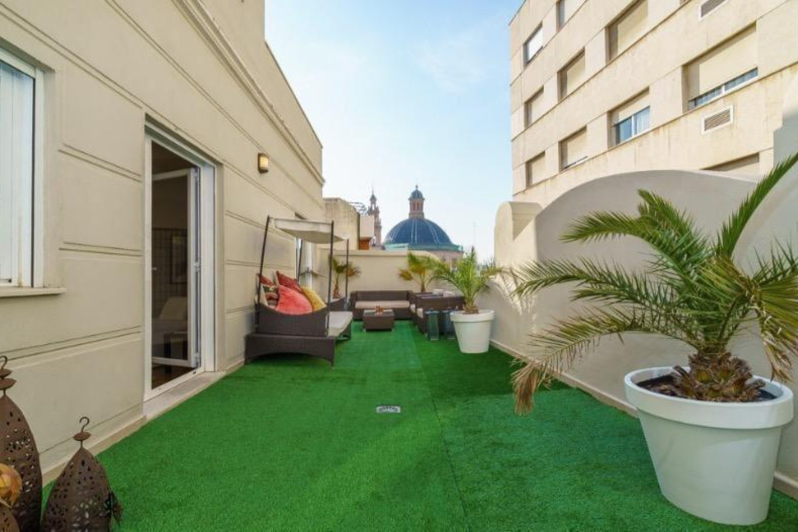 La amplia terraza ofrece un espacio único para crear diferentes ambientes: zona chill out, comedor exterior o área de descanso con total privacidad.